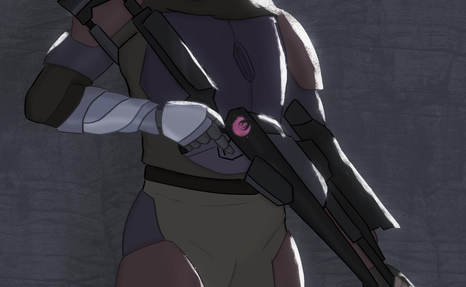 With time and effort, Elle recovers. Her legs are replaced with bionic ones below the knee. She takes up mercenary work, wielding a double-ended staff made of an Imperial electrostaff and her lightsaber. Though she is no longer Force-sensitive, she holds onto her combat training and the technical skills she learned, both as a sky-walker and an Inquisitor. Her work often overlaps with the Rebellion. After many years, she reunites with Adrien and Keldin. They make a plan to kill Lord Ochremus, once and for all.