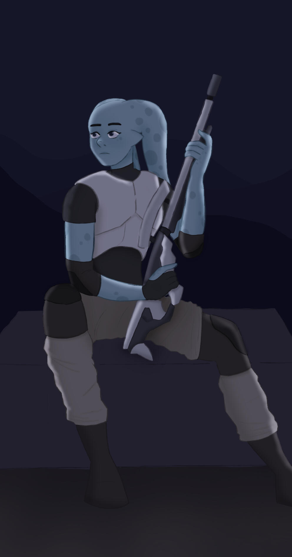 Rehla Sen is a Togruta1 pilot. While working on Bracca during the beginnings of the Empire's occupation, she steals the Andromeda, a ship she had been refurbishing in secret. She takes on various jobs hauling cargo across the galaxy, until Lilith and Kira find her and ask for her help. Rehla obliges, initially planning to turn them in for the reward money. She starts to feel responsible them and scraps her plans. After hunting them down, an injured Adrien finds the three of them on an outer rim planet. She has a short confrontation with Lilith, and agrees to come with them as a new member of their crew.