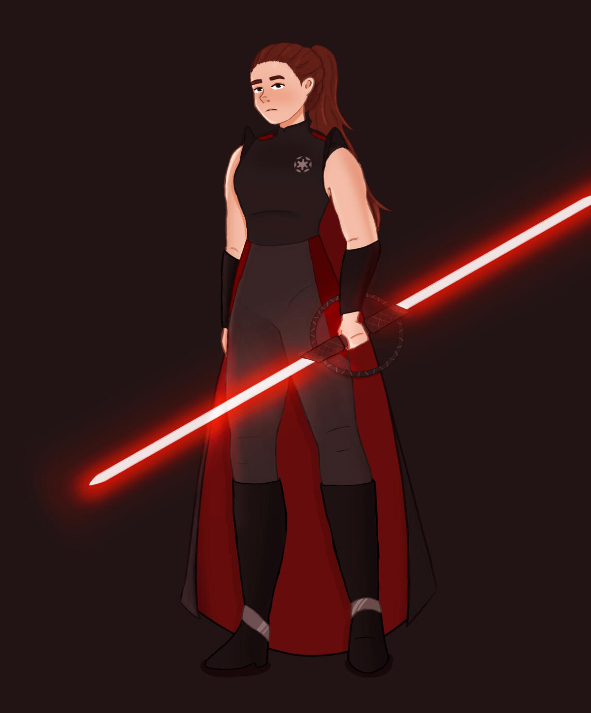 Adrien Vatt is a (former) Jedi Knight who receives her rank after the premature death of her master. Her hair is naturally a light sort of pink, but she dyes it crimson red for many years. She is a sort of older sister figure to Lilith, a Jedi Padawan she trains with. Adrien is ushered into the Inquisitorius when the Republic falls, where she is trained to hunt and kill any surviving Jedi. She works alongside Keldin, an old Jedi friend of hers. The two of them rekindle their romantic relationship, but not because they love each other; it's simply something to keep them alive and lucid.