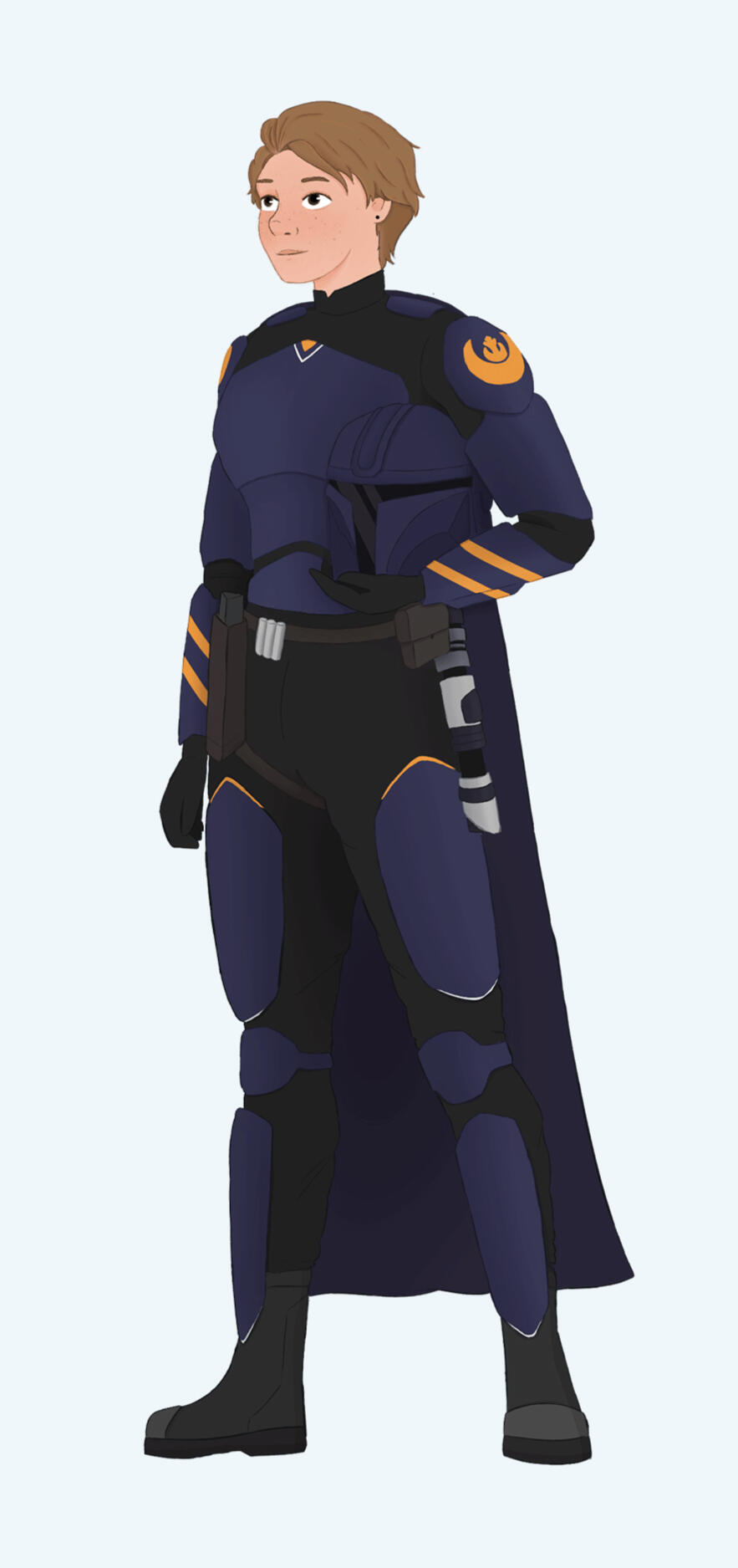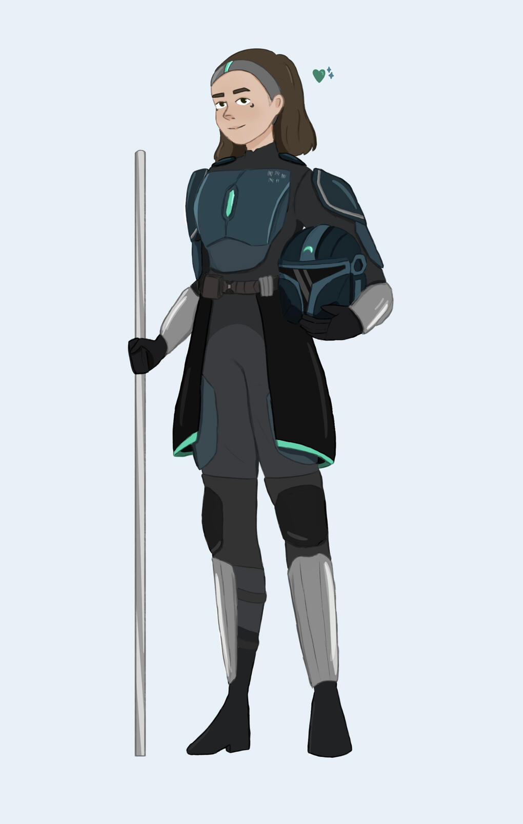 Nikoa "Oak" Rochka is a Force-sensitive girl born to a Mandalorian1 family. She is 5’7 with light skin, freckles, and the only daughter among three brothers. When Oak's mother discovers that she's Force-sensitive, she is sent to be raised away from Mandalore with her uncle, a Jedi historian. She grows up with a typical Mandalorian education, but also gains other skills; her aunt and uncle live on a farm and also encourage her to explore and be creative. Oak tries to hone her skills with the Force (based on what her uncle teaches her about the Jedi), but can only do so much without a teacher. At 14, she's old and ready enough to take up Mandalorian armor and return to her family on Mandalore.
