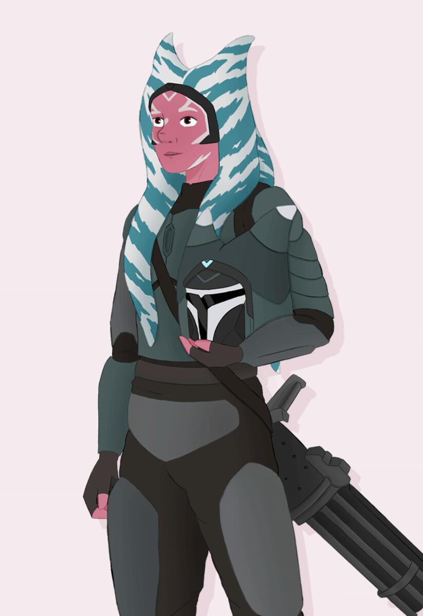 Panza Doros is a Togruta who grows up in a very remote region of the galaxy. She is 5'9 (without montrals1), tough, excitable, and a little hotheaded. Rescued as an orphan from the planet of Doros2 by a group of Mandalorians, she is taken away to a safe and secure Mandalorian covert. She grows up learning how to fight and, as is custom with this covert, how to sing. Her primary weapon is a rotary blaster. After the Republic falls, she and a group of fellow foundlings are old enough to leave. They make a vow not to reunite until the Empire is defeated.