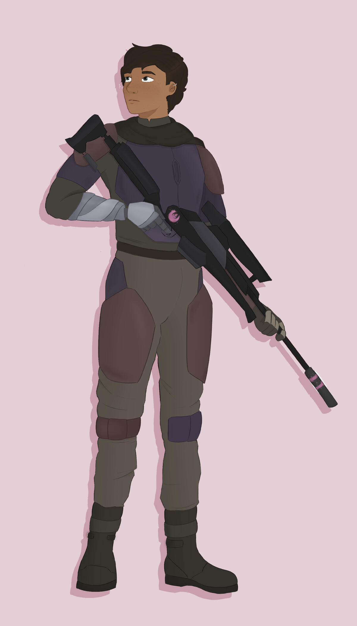 Sevitri Medina is a Mandalorian who grows up in a small village away from Mandalore. He is 5’8 with golden skin, mismatched armor, a bionic foot and forearm, and scruffy hair. Compared to regular Mandalorians, he is more laid back and emotionally driven.The village that Sevitri grows up in is surrounded by trees, lush rolling hills, and some small lakes. After his parents meet while traveling the galaxy in their twenties, they settle down there alongside a couple other Mandalorian families in favor of a simple life. Sevitri is exposed to music starting on the day he's born. His mother sings; his father plays the fiddle. As a boy, his mother passes down a guitar to him and the three are often playing at various social gatherings. Alongside any other musicians in town, they perform traditional Mandalorian songs, contemporary folk music, and tunes they've made up over the years. After he formally takes up Mandalorian armor, he focuses his skills on sharpshooting.Early on in the Empire's reign, his village is subjected to a series of bombings. The first one claims not only the life of his father, but Sevitri's left leg and right arm. Medics and armorers work together to create him new ones out of whatever materials they can salvage. Three years later, a second bombing run hits. Because of Sevitri's mother, the rest of the village is able to escape the foot soldiers and evacuate-- but she takes a heavy hit. Her passing isn't in an instant, so Sev has a day or two to get everything off his chest, learn her final wishes, and be with her in her final moments. When the bombing subsides, a group of three Mandalorians arrive to his village in response to the distress signal; having no family left among the villagers, he decides to join their party. One of their party members gives up an ingot of beskar1-- his last remaining heirloom from home-- to repair Sevitri's arm.Together, they're contracted by the Rebel Alliance to travel the galaxy and complete various tasks in the Rebellion's best interest. They formally join Lunar Squadron on Beothan soon after. Sevitri is kind-hearted-- sometimes to a fault-- and honest. The destruction of his village makes him turn inward and become resentful of the galaxy, but his clan and his work with the Rebellion brings him back down to Earth and he finds balance between a warrior lifestyle and a gentle-hearted demeanor.