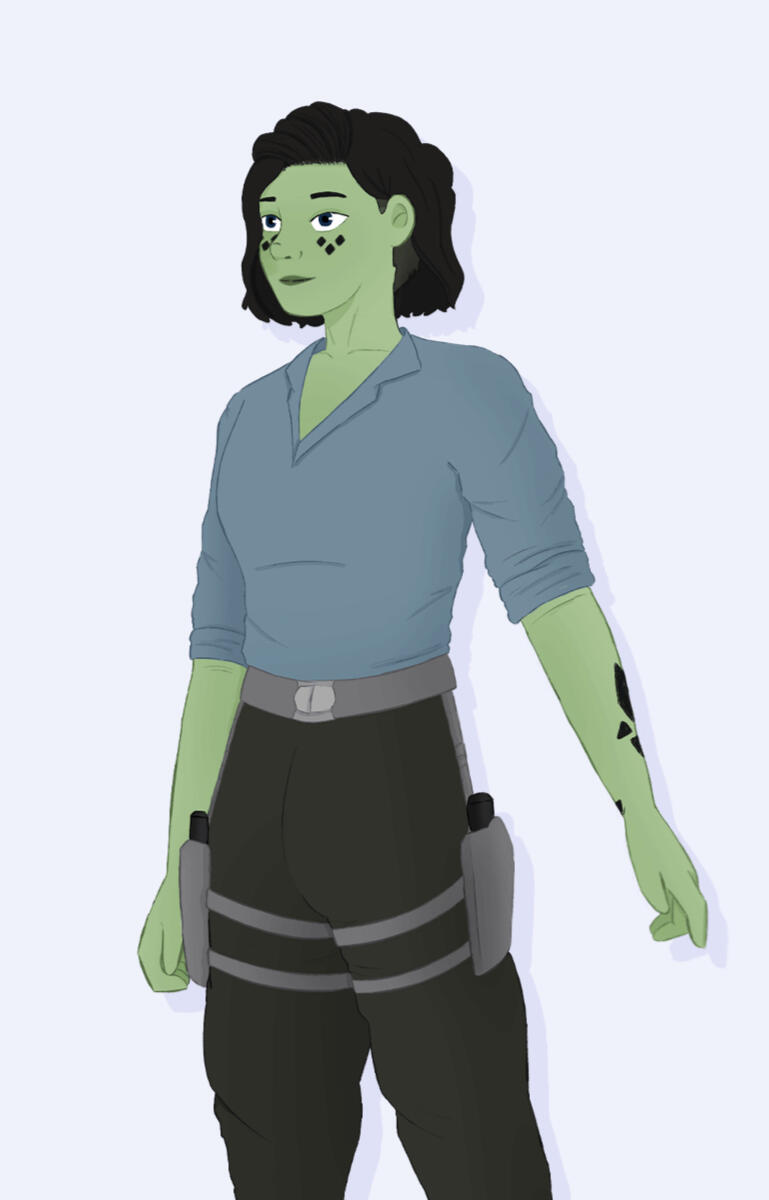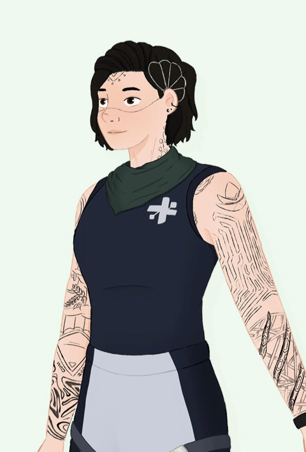 Dallian Sorenson is medical personnel on the planet Naboo1. She is 5’7 with dark hair and pale skin. As a teen, she trials to become a handmaiden for the queen, but is disqualified on a technicality related to her tattoos. She pivots to working in the medical sector, serving lots of refugees passing through Naboo. She continues to add to her tattoos.