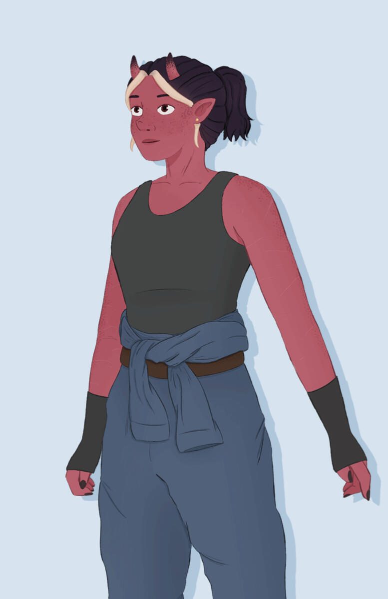 Arthion Roth is a half-Devaronian, half-Twi'lek1 pilot who founds Lunar Squadron. Growing up, she never quite fits in due to her unusual appearance. Her parents provide her with love and support, but as soon as she's of age, she knows that she needs to leave home and see the galaxy. Arth gets her pilot's license and spends her latter teen years/early adulthood saving for and refurbishing a small freighter-- the Ephemera. She travels to Coruscant, where two teenage locals, Dox and Vira, show her around and help her to fit in. Arth takes up various jobs transporting goods and repairing ships.